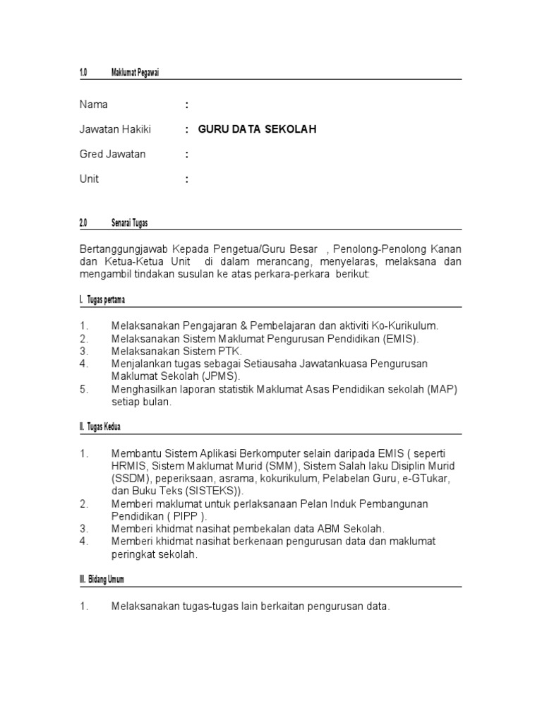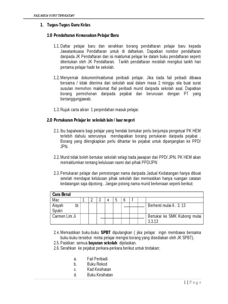 Sentiasa membuat pelaporan maklumat serta data disiplin dan peraturan sekolah kepada pihak pengetua, ppd. Bertanggungjawab kepada guru besar, guru penolong kanan, guru penolong kanan hem, guru penolong kanan kokurikulum, guru panitia dalam memb. Guru dari sekolah yang sama. Rangkaian prosedur dan senarai semak yang terdapat dalam fm adalah garis panduan langkah demi. Useful for all preschool teachers working with the malaysian moe.